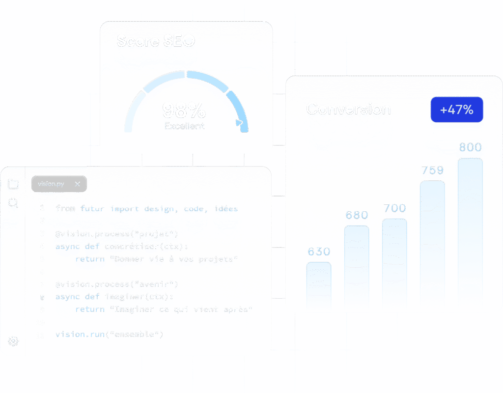Faire appel à une agence vous fait gagner du temps et évite les erreurs coûteuses. Vous profitez d’une expertise complète (design, développement, SEO, performance) et d’un site ou d’une application pensés pour vos objectifs : visibilité, prises de contact, ventes ou automatisation.