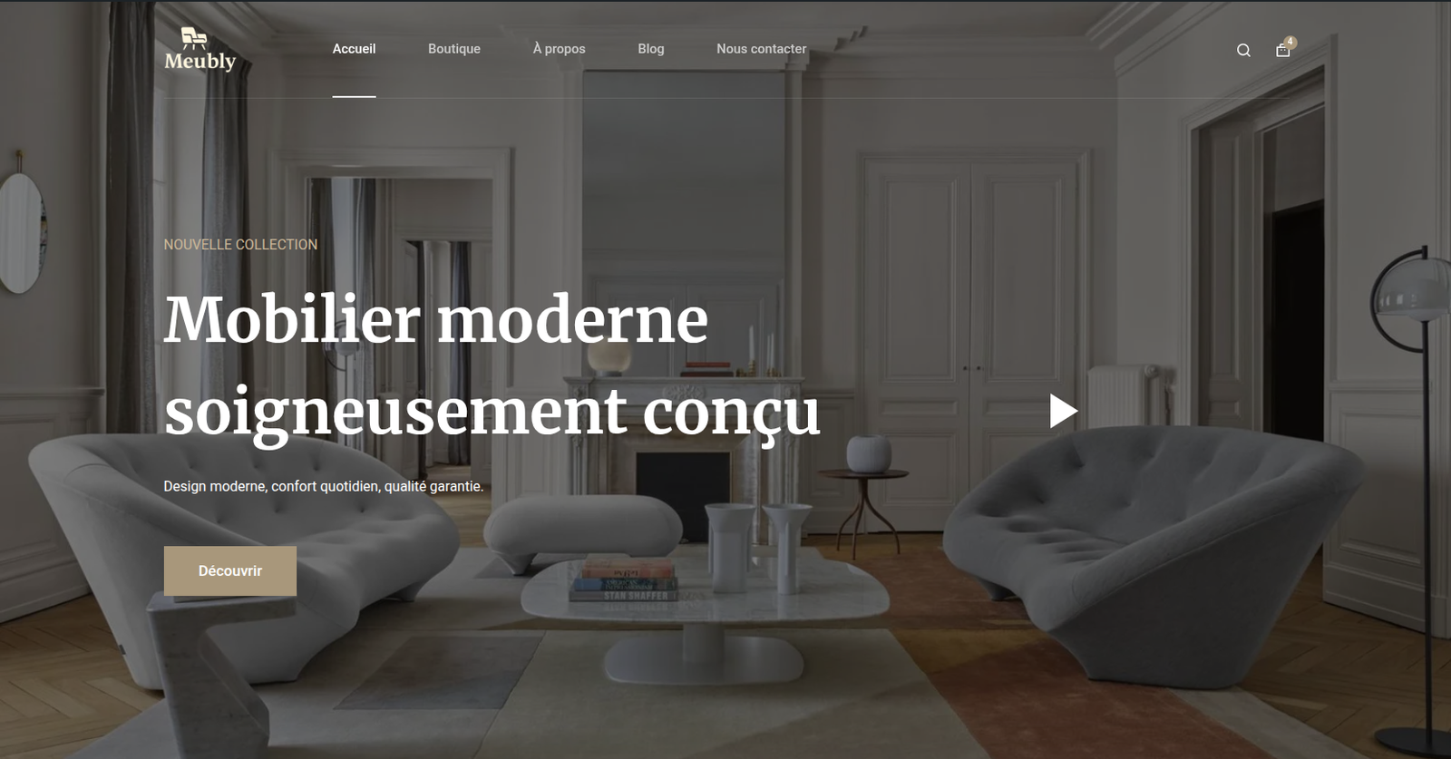 Meubly est une boutique en ligne dédiée à la vente de meubles modernes. L’objectif du site est de proposer une expérience d’achat simple et claire.